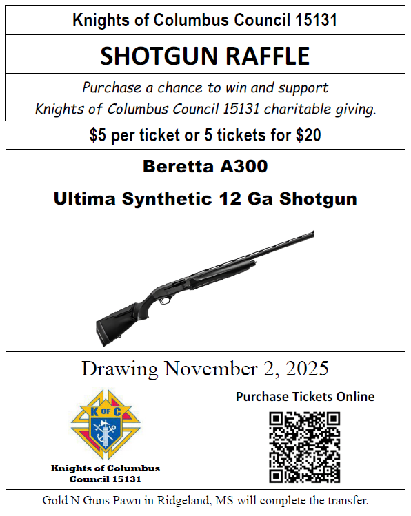 Council 15131, Jackson, is selling chances to win a shotgun. See flyer for details